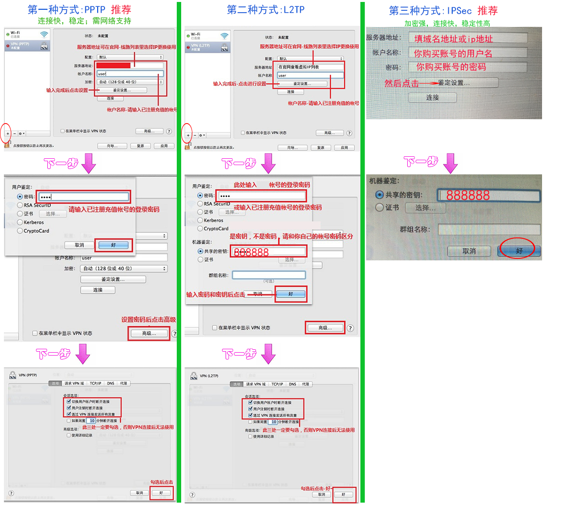 如PPTP方式連接不了,請(qǐng)嘗試用L2TP預(yù)共享密鑰方式,密鑰都是888888