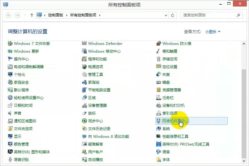 第二步: 打開系統(tǒng)“控制面板”,點擊“網(wǎng)絡(luò)和共享中心”。
