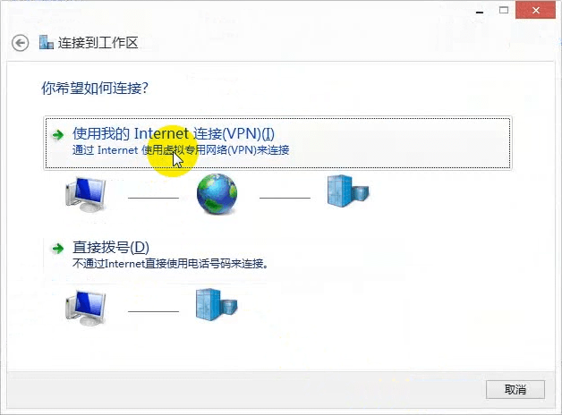 第四步: 選擇“連接到工作區(qū)(設(shè)置到您的工作區(qū)的撥號或代理連接)”,點擊下一步。